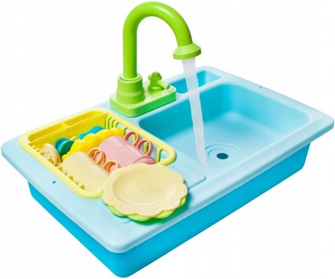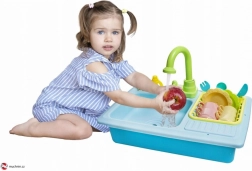 Tento realistický set umožňuje dětem napodobovat mytí nádobí díky funkčnímu kohoutku se skutečnou vodou. Hračka obsahuje 14 různých doplňků jako talíře, hrnky, příbory, čisticí prostředek a kartáč pro kompletní hrací zážitek. Vyrobena je z kvalitního plastu, který zaručuje dlouhou životnost a bezpečnost.