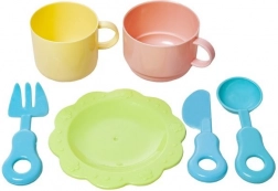 Obsahuje 14 prvků včetně talířů, hrnků a příborů pro plnohodnotné hraní.