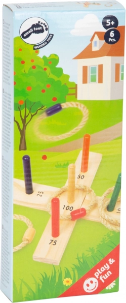 Hráči musí na 5 kolíků zastrčených do sestavitelného kříže z neošetřené borovice házet kroužky (Ø 7 cm) tak, aby dosáhli nejvíce bodů! Hra trénuje jemnou motoriku a koordinaci rukou a očí. Je možné ji vzít kamkoli sebou a kdekoli ji hrát. Hlavní vlastnosti: Trénuje jemnou motoriku a přesnostOblíbená venkovní hra