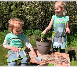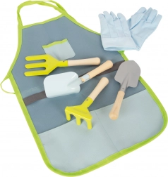 • Kompletní set: zástěra, rukavice a 4 kusy nářadí (rýč, hrábě, lopatka, vidle)