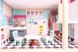 Domeček nabízí kuchyň, obývací pokoj, koupelnu a ložnici, vše v barevném provedení s realistickými doplňky pro pohlcující hru.