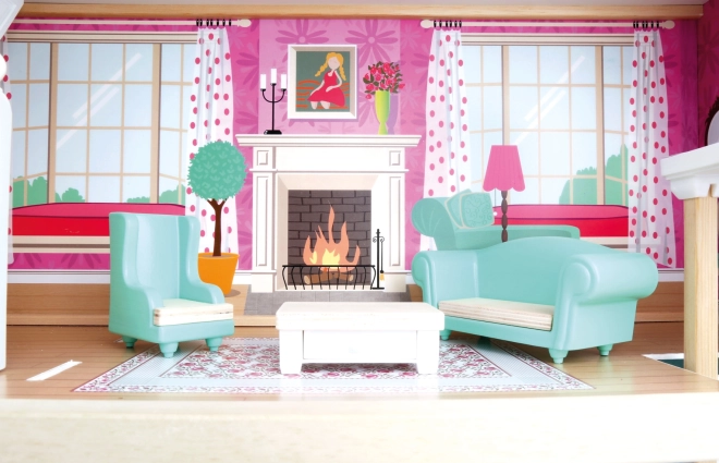 Součástí je 13 kusů stylového nábytku a doplňků, které inspirují k tvořivému vyprávění příběhů a rozvoji fantazie. Výška podlaží cca 20 cm je přizpůsobena běžným panenkám a figurkám.