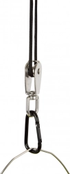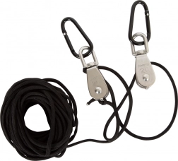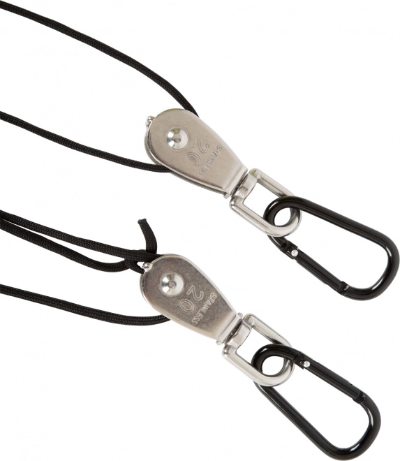 Praktické karabiny umožní rychlé připevnění k trámu, háku nebo provizornímu kotvení – bez nářadí, během chvilky.