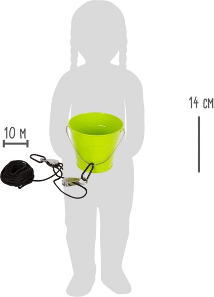 Perfektní pro použití v zahradním domečku, na prolézačkách nebo stromovém domku. Kovové ucho kyblíku je navrženo tak, aby se karabina s lanem neposouvala, což zvyšuje stabilitu a bezpečnost při manipulaci.