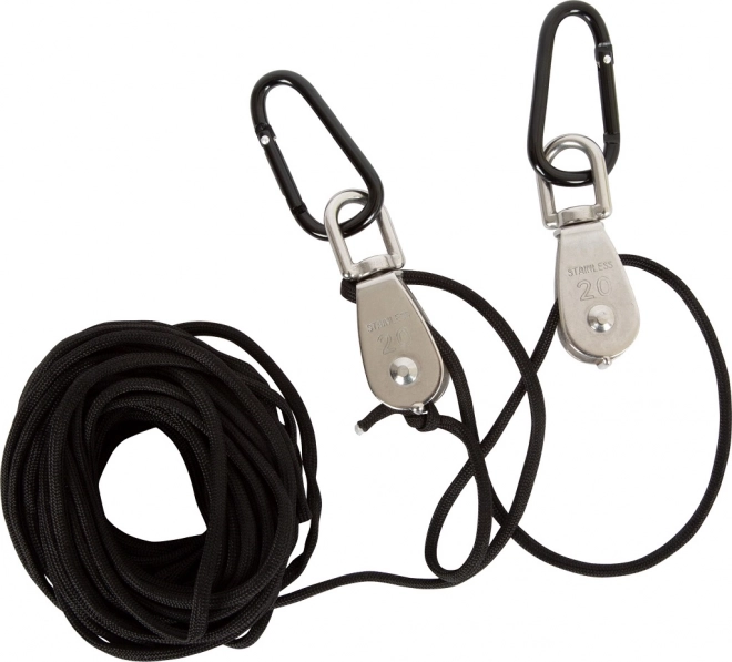 Tento robustní set kombinuje odolný kovový kyblík, silné 10m lano a dvojici kladek s karabinami pro snadné zavěšení. Děti se zábavnou formou učí, jak funguje mechanická výhoda, a s minimální námahou zvedají drobné předměty do výšky.