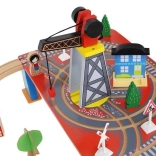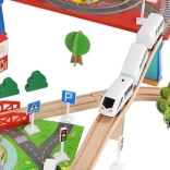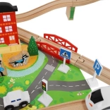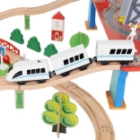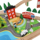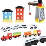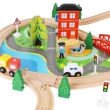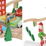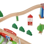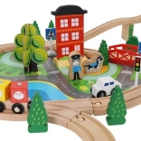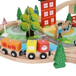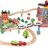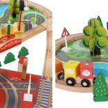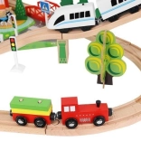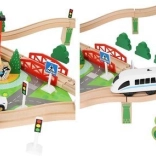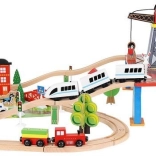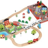 Dřevěná vláčkodráha s celkem 88 precizně vyrobenými prvky, včetně železnice, nákladního a osobního vlaku, automobilu, stromků a dopravních značek. Zábava spočívá v možnosti vytvořit si vlastní trasu, zatímco magnetické spojení jednotlivých částí zajišťuje snadnou obsluhu.
