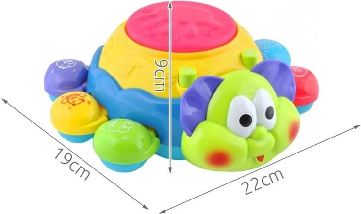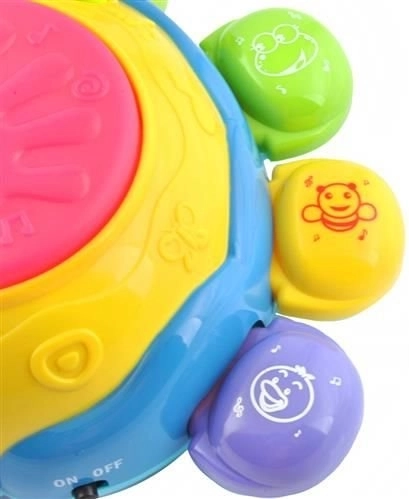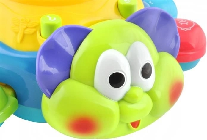 Hračka je vybavena zvukovými a světelnými efekty. Zvuky a melodie rozvíjejí hudební citlivost a dokonalý sluch. Tato hračka má vestavěný senzor, takže když narazí na překážku otáčí se jiným směrem. Horní strana po stisknutí reprodukuje zvuky a melodie. Tlačítko otazníku zahájí kvíz, ve kterém hračka položí otázku o barvě nebo jménu zvířat.