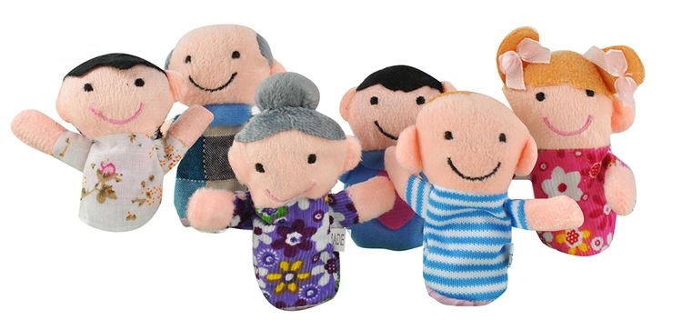 Šest maňásků – maminka, tatínek, syn, dcera, babička a dědeček – umožní rozvíjet děj, role i spolupráci dětí.