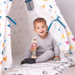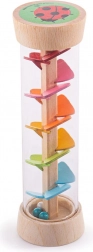 Díky pohybu korálků shora dolů dešťová hůl produkuje jemný zvuk připomínající déšť, což je uklidňující pro děti.