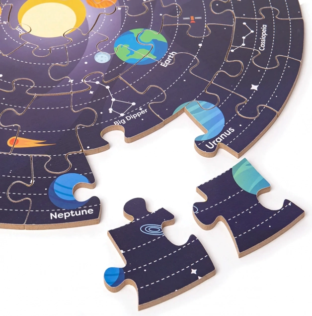 Tento produkt spojuje hravost a učení, jelikož každé sestavení dílků rozvíjí kognitivní schopnosti a znalosti o sluneční soustavě. Puzzle je vyrobeno z vysoce kvalitních a zodpovědně pocházejících materiálů, které splňují přísné evropské bezpečnostní normy.