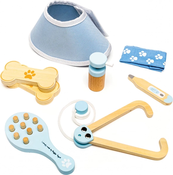 Díky kombinaci dřeva a textilu je hračka příjemná na dotek, odolná a bezpečná. Set je navržen tak, aby podporoval představivost, jemnou motoriku a empatii při péči o zvířecí pacienty. Skvělá volba pro smysluplnou hru na profese bez zbytečných plastů.