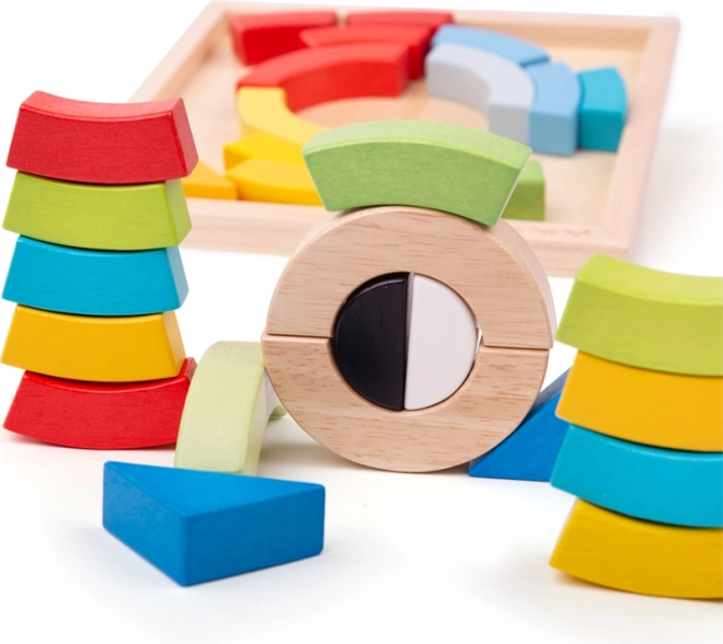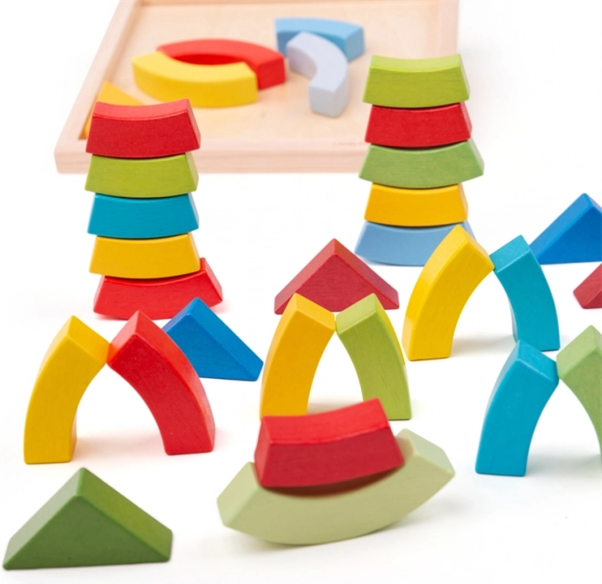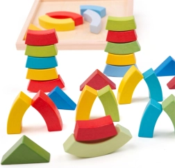 Dřevěné oblouky a trojúhelníky BIGJIGS TOYS jsou ideální pro volnou hru. Děti mohou skládat, stavět a experimentovat s tvary i rovnováhou, čímž přirozeně rozvíjejí představivost a logické myšlení. Praktická dřevěná základna usnadňuje ukládání i přenášení.