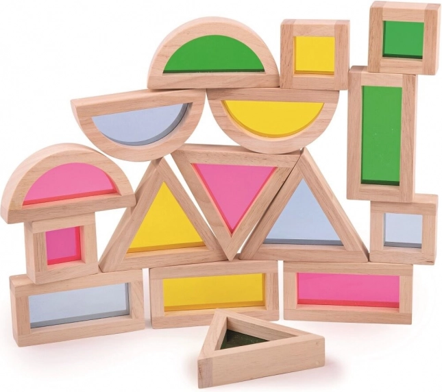 Senzorické kostky z přírodního dřeva inspirují děti ke skládání, balancování a stavění. Díky barevným okénkům uprostřed vytvářejí při hraní na slunci kouzelné světelné efekty a podporují zvídavost i vnímání barev.