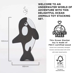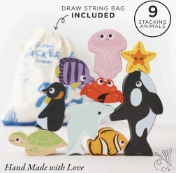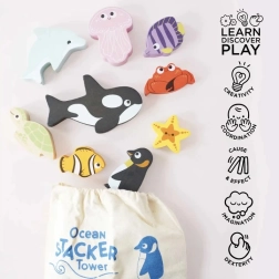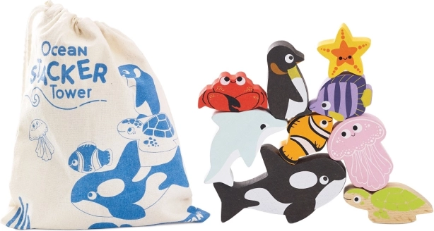 Tato kvalitní dřevěná skládačka s motivem oceánu přináší dětem od 18 měsíců hodiny bezpečné a tvořivé hry. Dílky ve tvaru velryby, delfína, hvězdice, tučňáka, mořské želvy, medúzy a dalších mořských kamarádů jsou navrženy tak, aby se dětem dobře držely, a podporují koordinaci oko–ruka, trpělivost a fantazii.