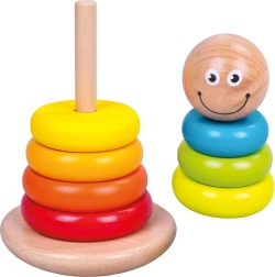 - základna s tyčí, sada barevných kroužků, dřevěná hlavička