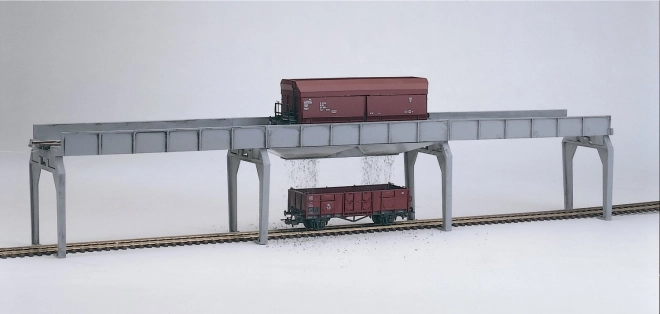 Realistický model betonového rámového mostu s integrovanou funkcí vykládky sypkých nákladů pro měřítko H0. Sestává ze tří segmentů s loži pro koleje a kulisami pro automatické otevření klapek vagonů. Ideální doplněk pro detailní kolejiště a plynulý provoz nákladních souprav. Funkční vykládka, automatické ovládání klapek a pevná rámová konstrukce pro autentický provoz.