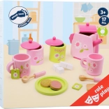 Tento set je vyrobený z kvalitního dřeva, což zaručuje dlouhotrvající zábavu a bezpečnost pro děti. Díky odnímatelným víkům na konvičce a obecně robustnímu provedení mohou děti snadno manipulovat s jednotlivými částmi.