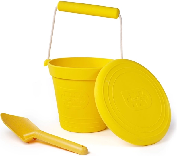 Žlutý silikonový plážový kyblíček BIGJIGS TOYS je lehký, ohebný a skladný pomocník pro malé objevitele. Vyroben z potravinářského silikonu, je odolný proti zmačkání, snadno se čistí a je vhodný od 12 měsíců na pláž, zahradu i k vodě.