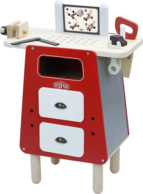 Tento oboustranný ponk s nářadím, vytvořený Ateliérem Vilac, obsahuje až 76 kusů příslušenství a nabízí možnost sestavení 4 modulárních konstrukcí. Tato kolekce je ideální pro kreativní děti, které milují tvoření a DIY projekty.