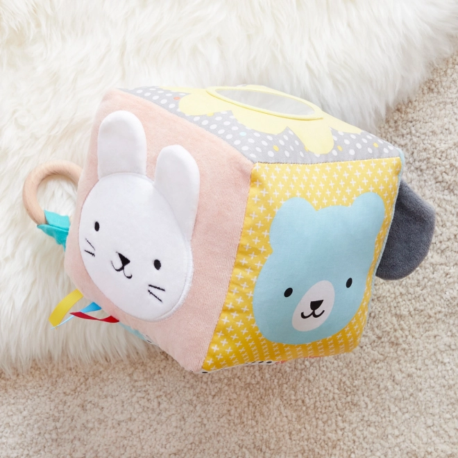 Tato textilní kostka je dokonale navržena pro smyslový rozvoj vašeho dítěte. Díky různé paletě aktivit, jako jsou přátelské obličeje zvířátek a různé textilie, je ideální pro zkoumání každého malého detailu.