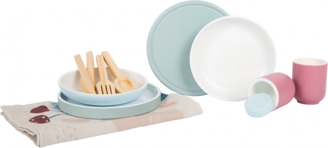 Složena z 12 dílů včetně talířů, šálků a příborů. Perfektní pro malé kuchaře.
