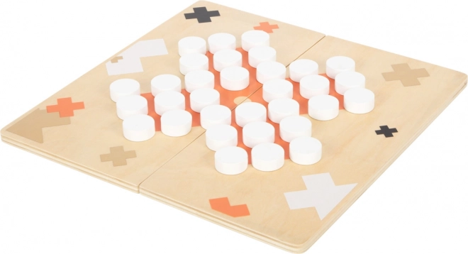 Tato prémiová sada kombinuje dvě klasiky – Mlýn a Solitér – na oboustranné dřevěné desce. Dvě poloviny desky drží pevně u sebe díky magnetům, takže hra je stabilní a příjemná na dotek. Estetická barevná paleta s jemnými zlatými detaily skvěle zapadne do moderní domácnosti.