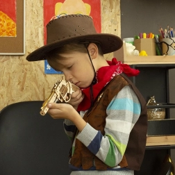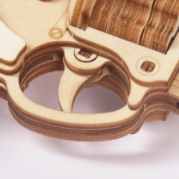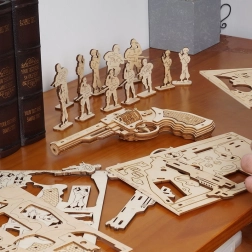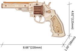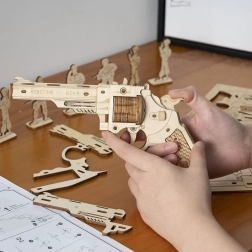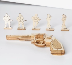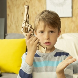 Revolver je vyrobený z kvalitního dřeva a jeho dílky jsou precizně vyřezané, což zajišťuje dokonalé spojení při sestavování.