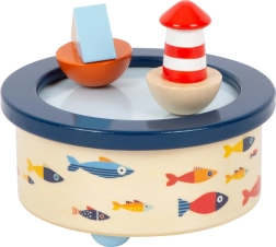 Kouzelná dřevěná hudební skříňka s námořním motivem, která děti uspí německou ukolébavkou. Na vršku se v rytmu melodie otáčí maják a loďka, které drží na místě pomocí magnetu. Bezpečné zaoblené hrany, příjemný dřevěný materiál a kvalitní potisk v moderních barvách z ní dělají ideální doplněk do dětského pokojíčku.