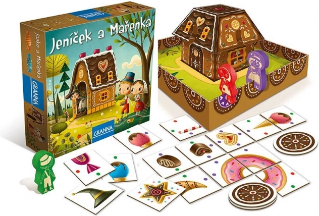 Hra Granna Jeníček a Mařenka vás zavede do temného lesa plného dobrodružství. Děti se ztratily v lese a narazily na chaloupku z nejrůznějších sladkostí. Skládáte společně kompletní obrázky sladkostí a získáváte žetony perníčků. Shromážděte pět žetonů, abyste vyhráli, ale pozor na ježibabu!