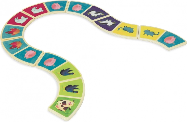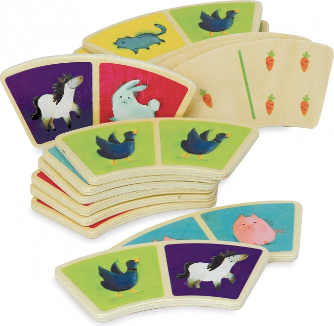 Obohaťte hru vašich dětí touto originální sadou domino s nádherným farmářským motivem od značky Vilac. Díky obloukovitému tvaru jsou dominové dílky nejen unikátní, ale také snadno uchopitelné i pro malé dětské ruce. Sada obsahuje celkem 28 dřevěných dílků, které poskytnou nekonečné hodiny zábavy. Hra domino přispívá k rozvoji pozornosti, jemné motoriky a logického myšlení.