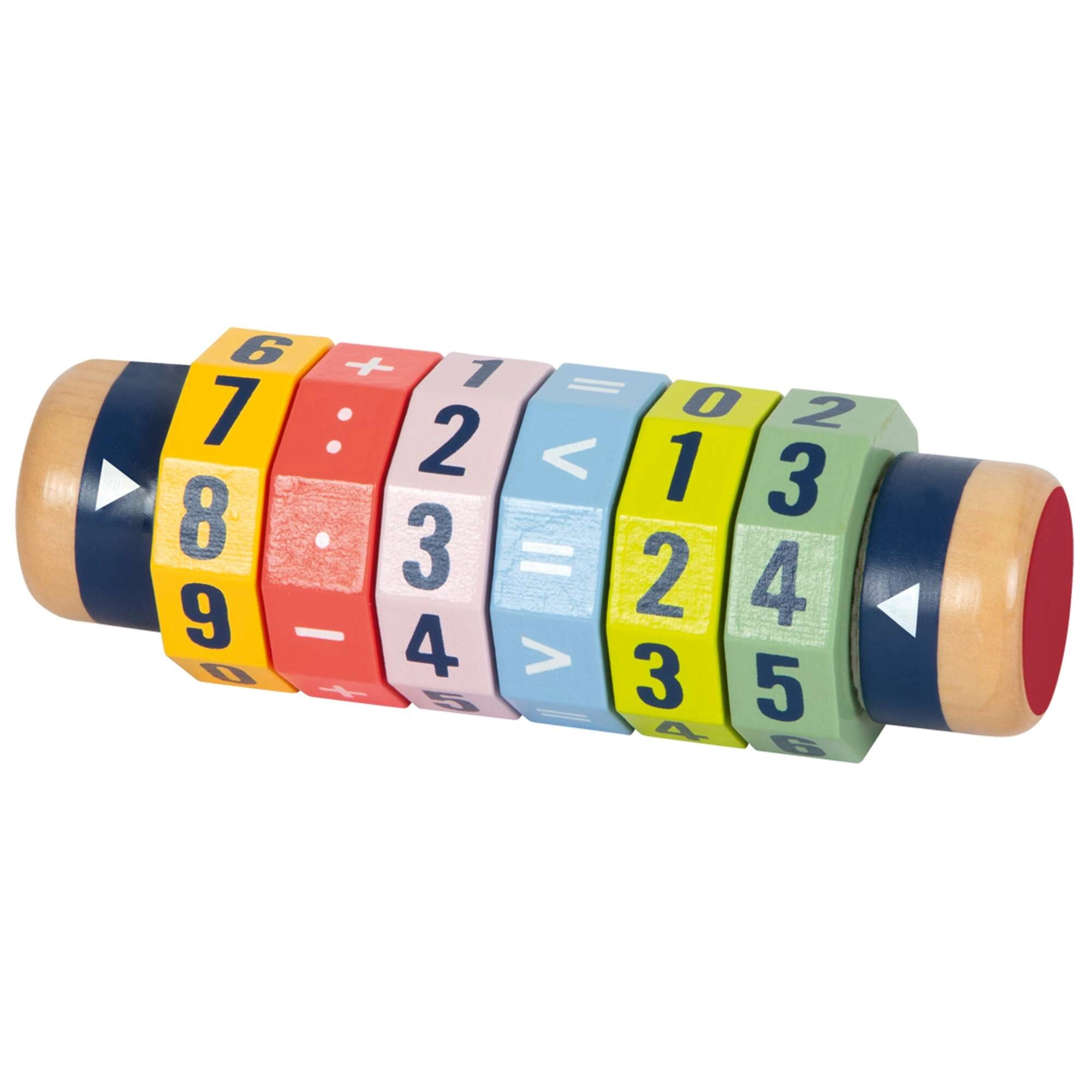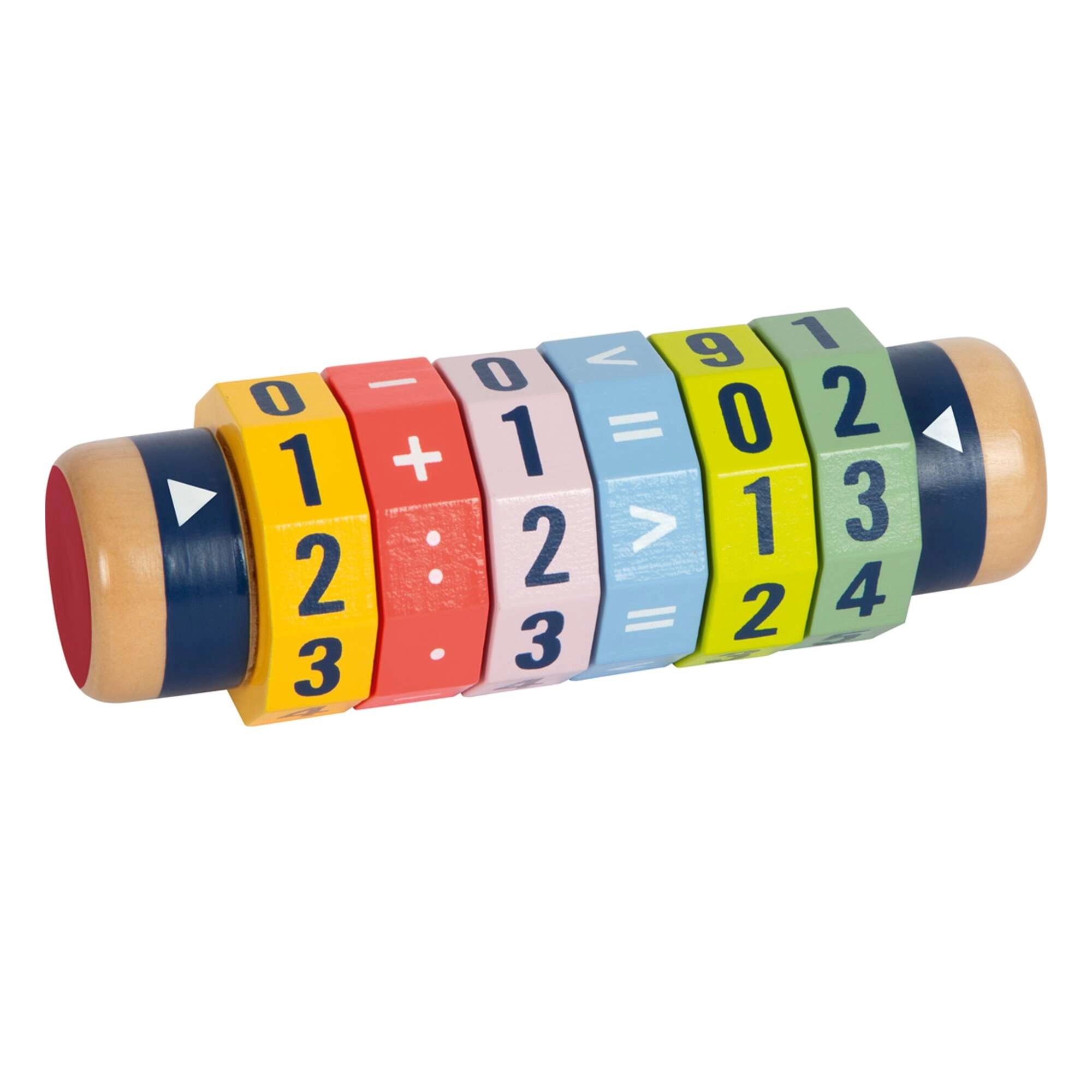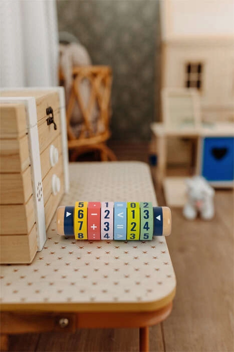 Objevte zábavnou cestu k matematice. Dřevěný válec s šesti otočnými prstenci umožní dětem vytvářet jednoduché i složitější rovnice a porovnávání čísel. Díky jasným barvám a výrazným číslicím se děti učí hravou formou a posilují jemnou motoriku i soustředění.