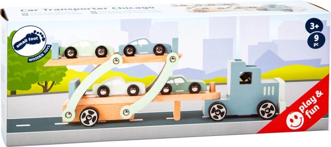 Objevte robustní dřevěný kamion s návěsem Chicago od small foot, který převeze až čtyři autíčka a nadchne děti od 3 let. Díky sklopné horní palubě a nakládací rampě je hraní plynulé a zábavné. Celodřevěné provedení zajišťuje dlouhou životnost a bezpečný herní zážitek. Stabilní dřevěná konstrukce, sklopný návěs pro 4 auta a podpora jemné motoriky a představivosti dělají z tohoto transportéru ideální hračku do dětského pokoje.
