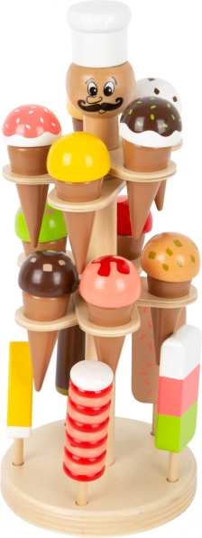 Udělejte dětem radost s otočným dřevěným zmrzlinovým stánkem Luigi Gelato od small foot. Nabízí 15 druhů zmrzlin a nanuků ve třech patrech, ideální pro hraní na obchod, kuchyňku či dětskou kavárnu. Při hře se rozvíjí jemná motorika, sociální dovednosti a fantazie – každou zmrzlinu lze samostatně vyjmout a servírovat.