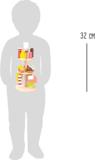Tento láskyplně navržený zmrzlinový stánek z masivního dřeva splní všechna zmrzlinová přání. Děti si mohou vybírat mezi nanuky a kopečkovou zmrzlinou ve vaflovém kornoutku a sestavit si vlastní vitrínu plnou barevných pochoutek. Díky stabilní konstrukci je ideální do dětského obchodu, kuchyňky nebo kavárničky.