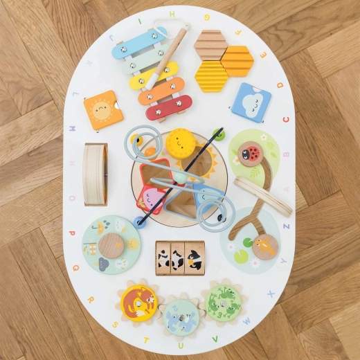 Objevte kvalitní dřevěný aktivní stolek pro batolata z kolekce LE TOY VAN Petilou, který podporuje jemnou motoriku, smyslový rozvoj a kreativní hru. Nabízí korálkový labyrint, vkládačku, xylofon, ozubená kolečka a další prvky. Vyroben z FSC® dřeva a malován netoxickými barvami pro bezpečnou a dlouhodobou zábavu.