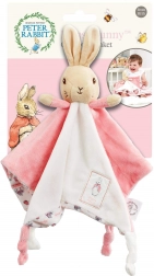 Barvy a vzory králíčka stimulují rozvoj dětských smyslů, zatímco uzlík na rohu dečky je ideální ke kousání.