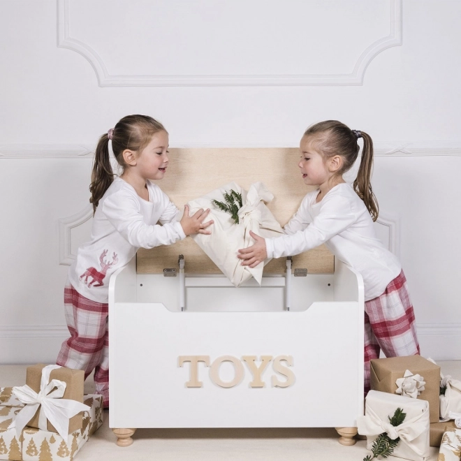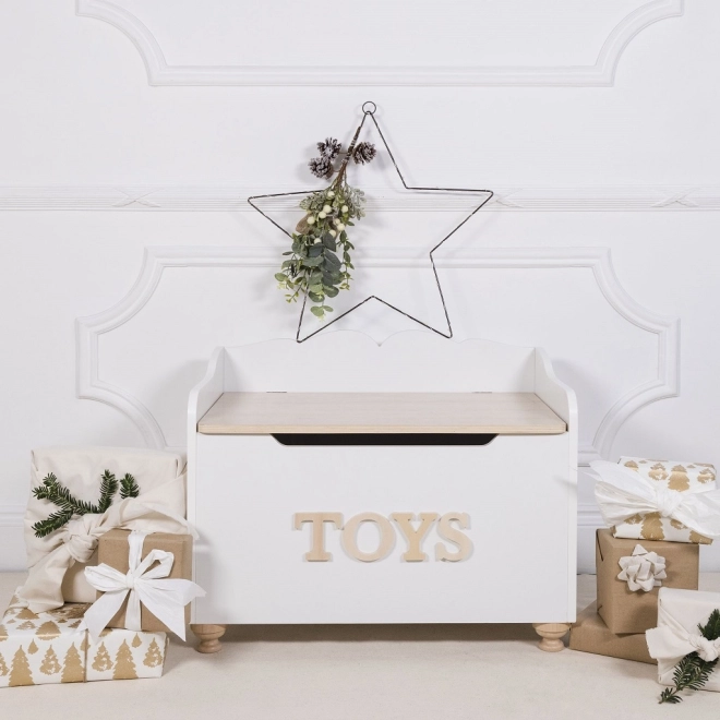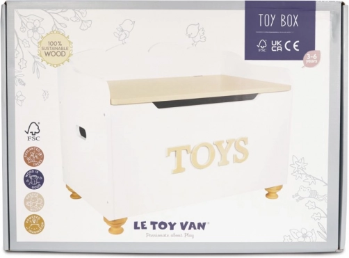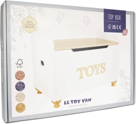 Dřevěná truhla na hračky od Le Toy Van je nejen stylová, ale i praktická. Poskytuje spolehlivý prostor pro uložení hraček a pokladů dětí. Design kombinuje klasickou bílou barvu s přirozeným dřevem, což je ideální do jakéhokoliv interiéru. Díky pomalým zavíracím pantům a dřevěným nohám je truhla bezpečná pro děti.