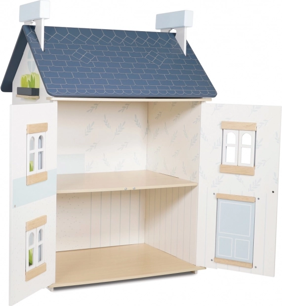 Domeček pro panenky Sky od Le Toy Van je vyroben z vysoce kvalitního dřeva s důrazem na etické výrobní praktiky. Je vymalován jemnou bílou a pastelovou modrou barvou, což z něj činí dekorativní prvek pro každý dětský pokoj. Otevíratelná okna a dvoupatrová konstrukce nabízejí nespočet možností pro imaginativní hry a rozvoj koordinace a jemné motoriky.