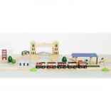 Tato velká dřevěná vláčkodráha zavede děti do srdce města inspirovaného Londýnem. Díky bohaté výbavě – od nádraží přes pestrobarevné budovy až po ikonický zvedací most – nabízí nespočet herních scénářů a podporuje otevřenou, představivou hru. Dva vlaky s magnetickými vagóny se snadno spojují a bezpečně jezdí po stabilních dřevěných kolejích.