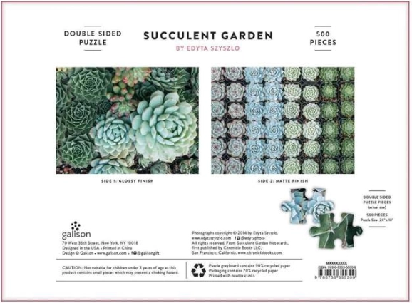 Objevte krásu sukulentů na dvou různých motivech v jednom balení. Toto oboustranné puzzle s 500 dílky přináší výzvu i odpočinek – z jedné strany lesk, z druhé mat pro snadnější orientaci. Kvalitní tisk vyniká živými odstíny zelené a modré a dílky do sebe přesně zapadají.