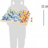 Dřevěné šachy pro děti small foot – skládací sada s barevnými figurkami