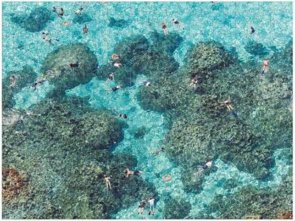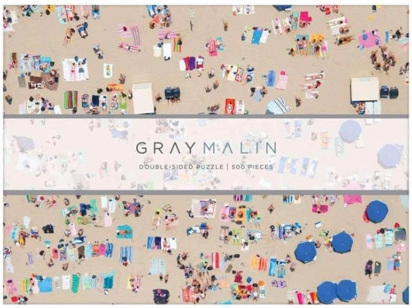 Stylové oboustranné puzzle inspirované ikonickými leteckými fotografiemi Gray Malin přináší atraktivní výzvu a zároveň dekorativní výsledek. Jedna strana zachycuje rušnou pláž z ptačí perspektivy, druhá klidnou hladinu oceánu se skalisky a plavci. Díky rozdílné povrchové úpravě (lesk/mat) snadno poznáte, kterou stranu právě skládáte.
