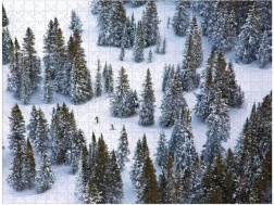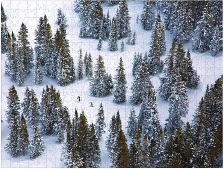 Objevte nadčasové letecké snímky GRAY MALIN v podobě prémiového oboustranného puzzle. Jedna strana vás zavede do klidné zimní scenérie s zasněženými stromy, druhá ožije dynamikou barevných lyžařů na ostrém bílém sněhu. Každý dílek přesně zapadá, takže skládání je plynulé a uspokojivé.