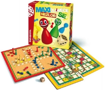 Užijte si dvojitou porci rodinné zábavy v jednom balení: maxi provedení klasických her, dřevěné figurky vysoké 5 cm, velká dřevěná kostka a oboustranný herní plán. Díly se skvěle drží dětem i seniorům – ideální společenská hra od 3 let.