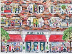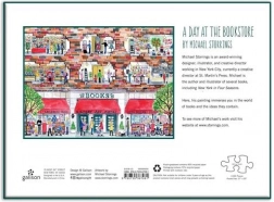 Puzzle obsahuje pečlivě vykreslené scénky, které dokonale zachycují atmosféru knihkupectví a městského života.