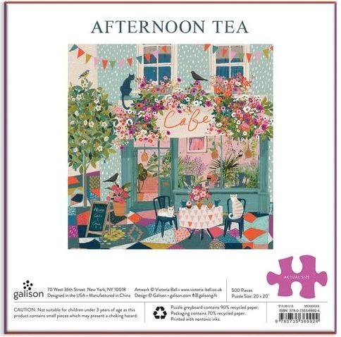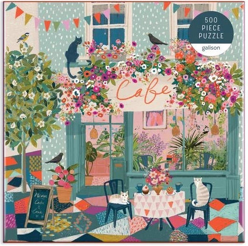 Objevte půvabný svět od GALISON s motivem „Odpolední čaj v kavárně“. Ilustrace nejprodávanější umělkyně Victoria Ball zachycuje útulnou atmosféru městské kavárny zdobené kvetoucími rostlinami, v níž si hrají rozkošné kočky a poletují ptáci. Puzzle je uloženo v pevné krabici s matným povrchem, ideální i jako dárek.