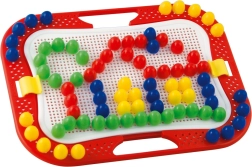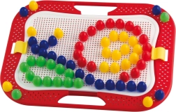 Tato kreativní sada mozaiky přináší dětem ve věku od 3 let nekonečné možnosti skládání obrázků a vzorů. Velké, snadno uchopitelné kolíčky s hladkou kopulovitou hlavou se vkládají do otvorů v robustní perforované desce zasazené v pevném rámu s madly. Hra podněcuje představivost, rozvíjí koordinaci oko–ruka a posiluje koncentraci.