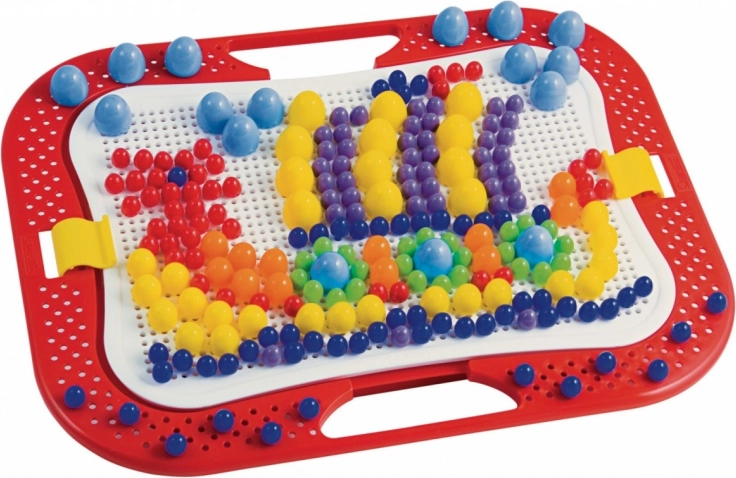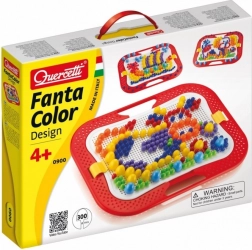 Objevte kreativní mozaiku QUERCETTI FantaColor Design s 300 kolíčky ve 3 velikostech pro děti od 3 do 6 let. Stabilní deska s rámem a rukojetěmi se dá postavit horizontálně i vertikálně, takže si děti mohou snadno tvořit podle šablon z alba nebo podle vlastní fantazie. Hra rozvíjí jemnou motoriku, koordinaci oko–ruka i vnímání barev.