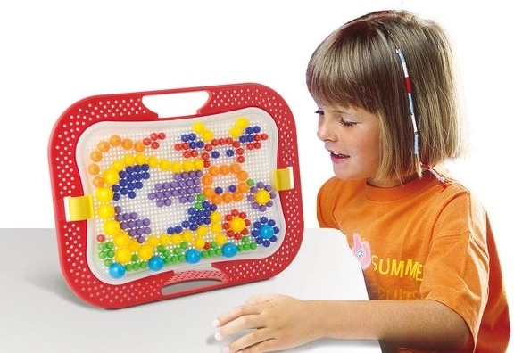 Mozaika QUERCETTI FantaColor Design je chytrá a zábavná tvořivá hra, která děti přirozeně vede k trpělivosti a soustředění. Díky perforované desce v pevném rámu s oblými hranami a praktickým rukojetím je manipulace snadná a bezpečná – ideální na doma i na cesty.