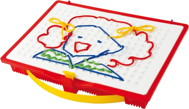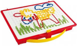 Objevte kouzlo kreativní hry s vyšívací soupravou Quercetti Filò, která podporuje dětskou fantazii a jemnou motoriku. Pomocí speciálních per mohou děti vytvářet různé obrázky zasouváním barevných šňůrek do otvorů na hrací desce, což jim přináší radost a zábavu.